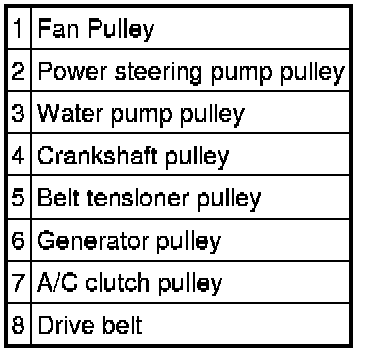 - if there is evidence of fluid contamination on the accessory drive belt. When the drive belt has been exposed to fluid contamination during vehicle operation, such as leaks from the power steering system, A/C system or cooling system, clean all pulleys with soap and water, rinse with clean water and install a new accessory drive belt. If the drive belt has been exposed to fluids in a localized area during routine vehicle service, such as replacement of hoses or fluids, the drive belt and pulleys should be washed with soap and water immediately (prior to starting the engine), and rinsed with clean water.