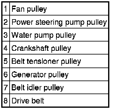 With the engine running, check accessory drive belt tracking on all pulleys. If the edge of the accessory drive belt rides beyond the edge of the pulleys, noise and premature wear will occur. Make sure the accessory drive belt rides correctly on the pulley. If an accessory drive belt tracking condition exists, proceed with the following: