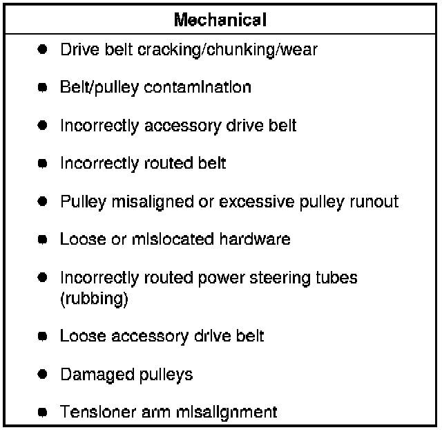 3. Eliminate all other non-belt related noises that could cause belt misdiagnosis, such as A/C compressor engagement chirp, power steering cavitations at low temperatures, variable camshaft timing (VCT) tick or generator whine.