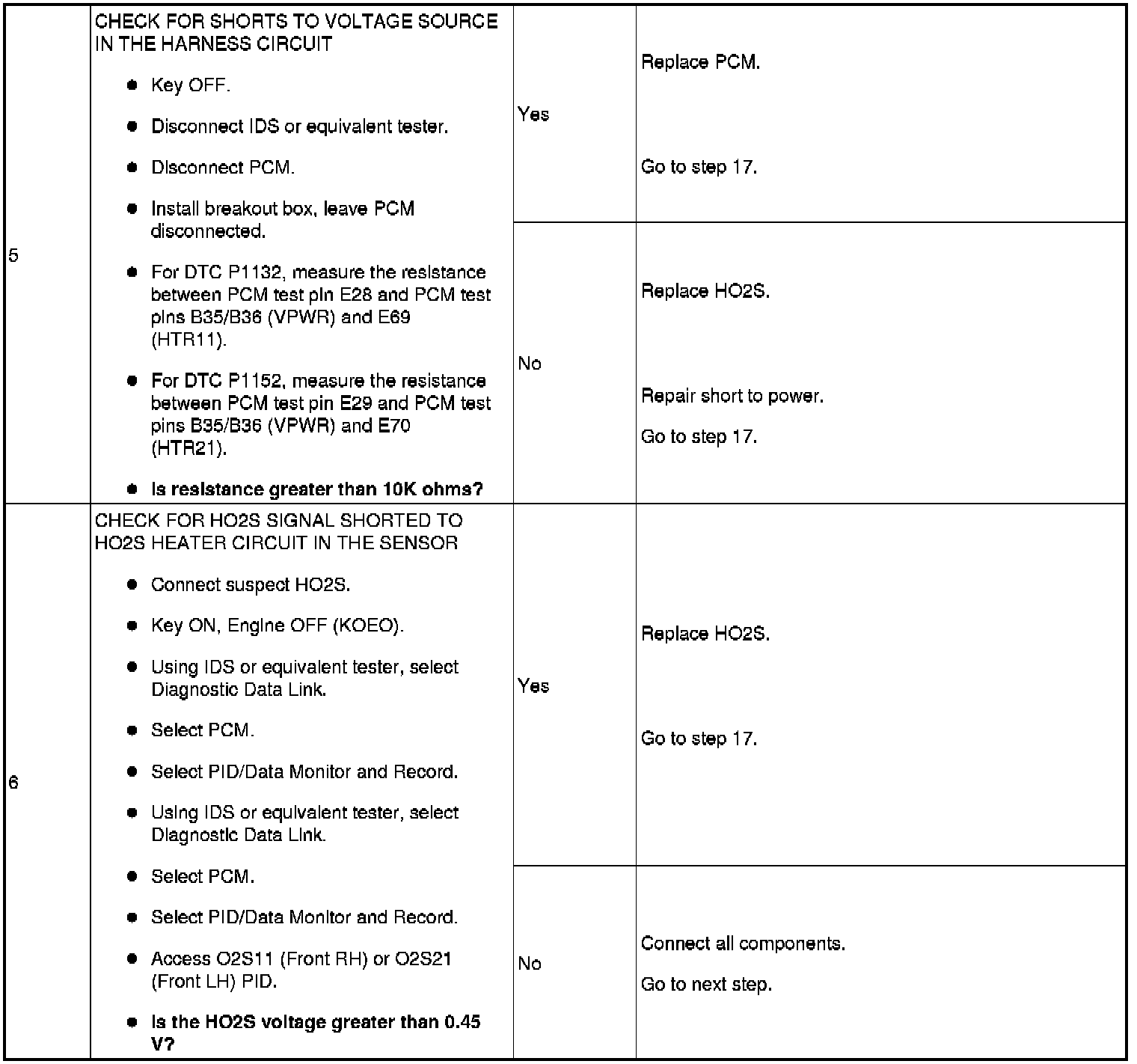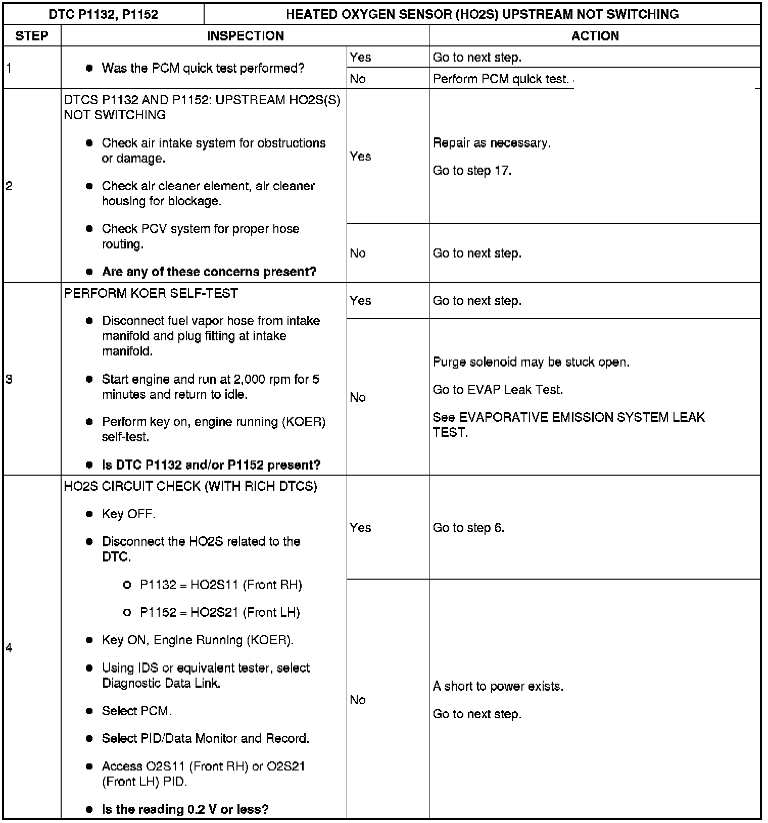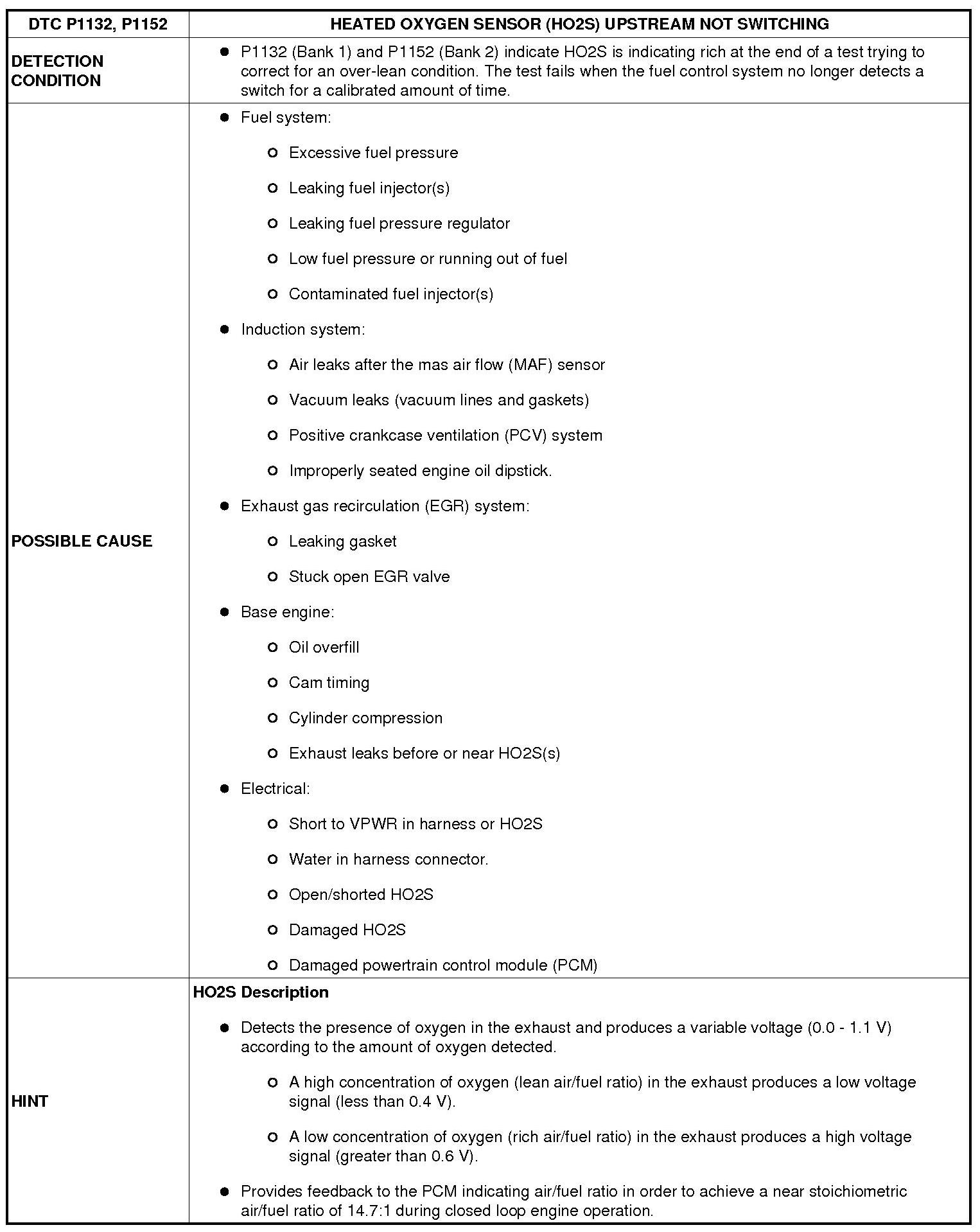 DTC P1132, P1152