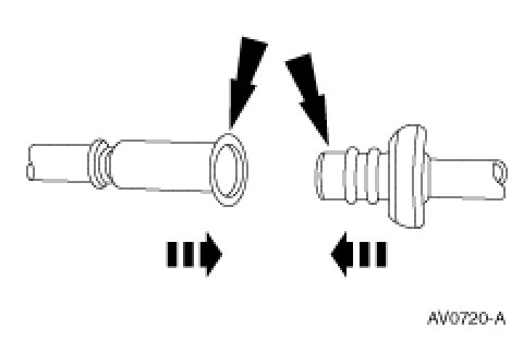 2. Connect the fitting by inserting the male end into the female end of the fitting. Push the fitting together until the garter spring is engaged.