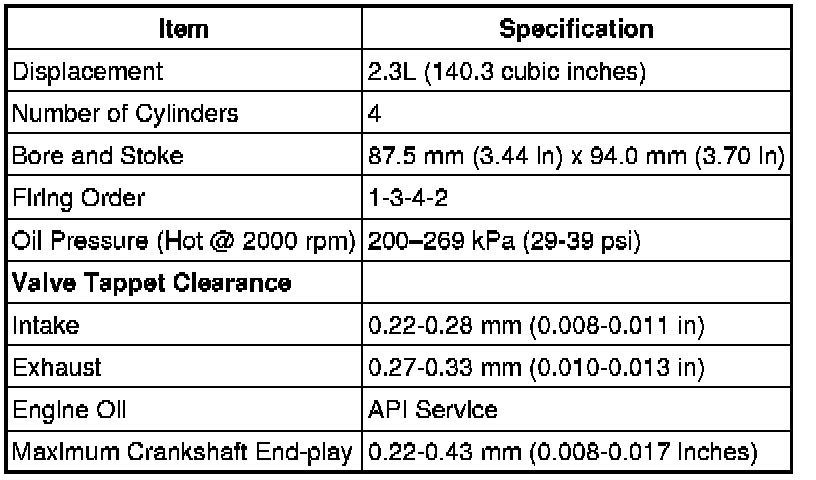 ENGINE SPECIFICATIONS - 2.3L