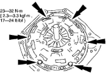 NOTE:If the parts are to be reused, mark the clutch cover and the flywheel.