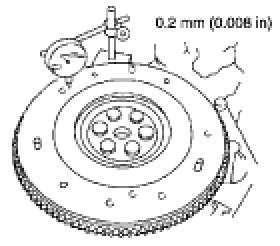 2. Turn the flywheel. If the runout exceeds the maximum allowance, replace the flywheel.