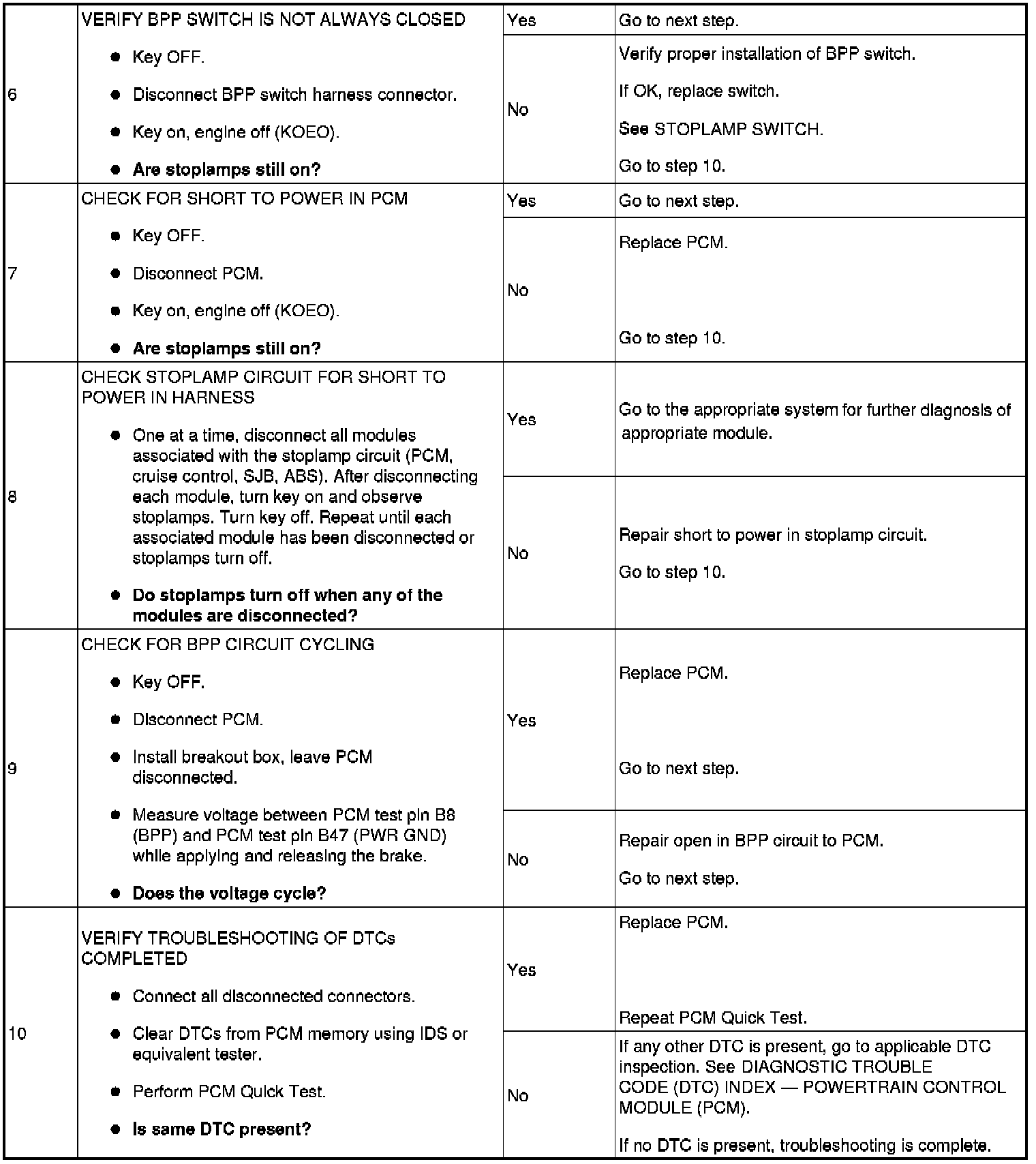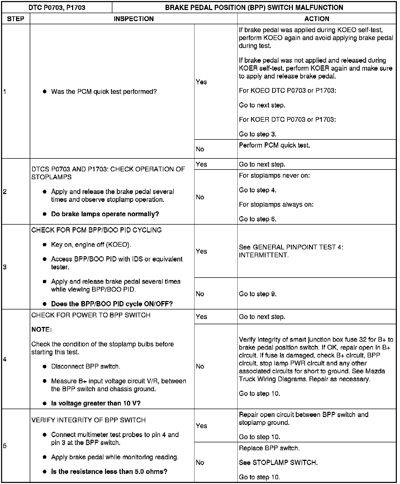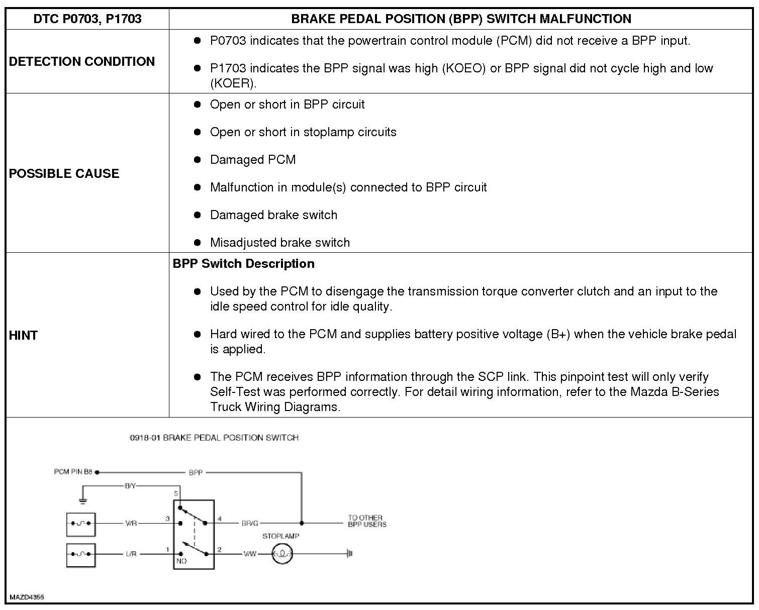 BRAKE PEDAL POSITION (BPP) SWITCH MALFUNCTION