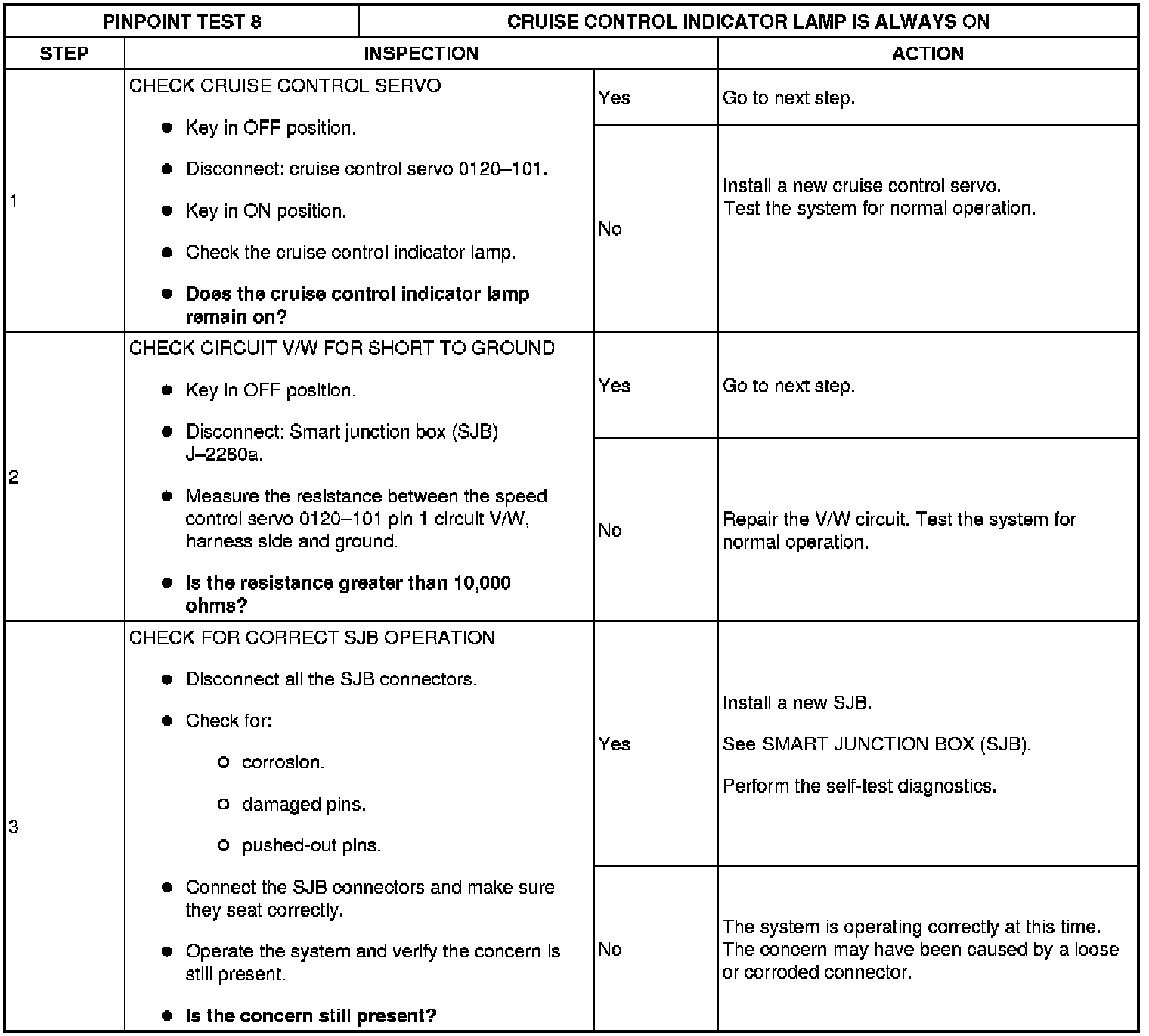SYSTEM PINPOINT TEST 8: CRUISE CONTROL INDICATOR LAMP IS ALWAYS ON