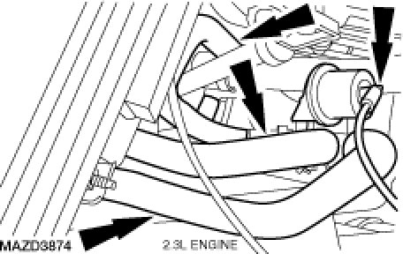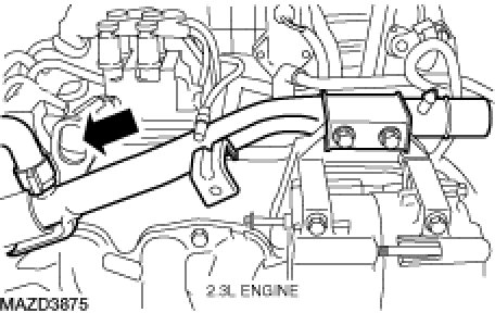 On 2.3L engines, disconnect the heater hose from the water outlet tube and remove the heater hose assembly.