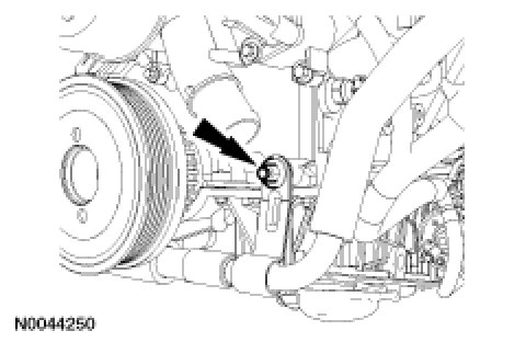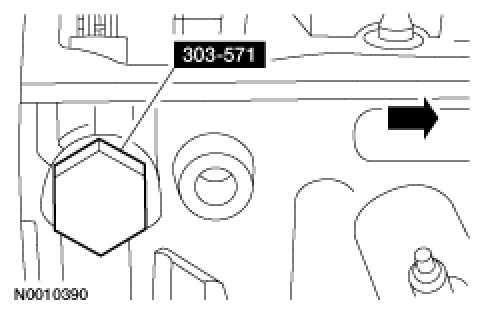 NOTE:Install a new O-ring seal on the tensioner and lubricate with clean engine oil.Install the RH hydraulic camshaft tensioner.Tightening Torque44 Nm {4.5 kgf-m, 32 ft-lbf}