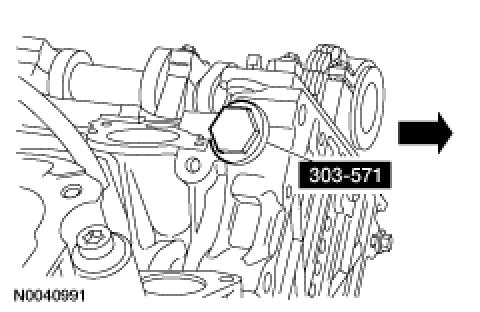 NOTE:The crankshaft timing tool SST must be installed on the damper and should contact the engine block, this positions the engine at TDC.
