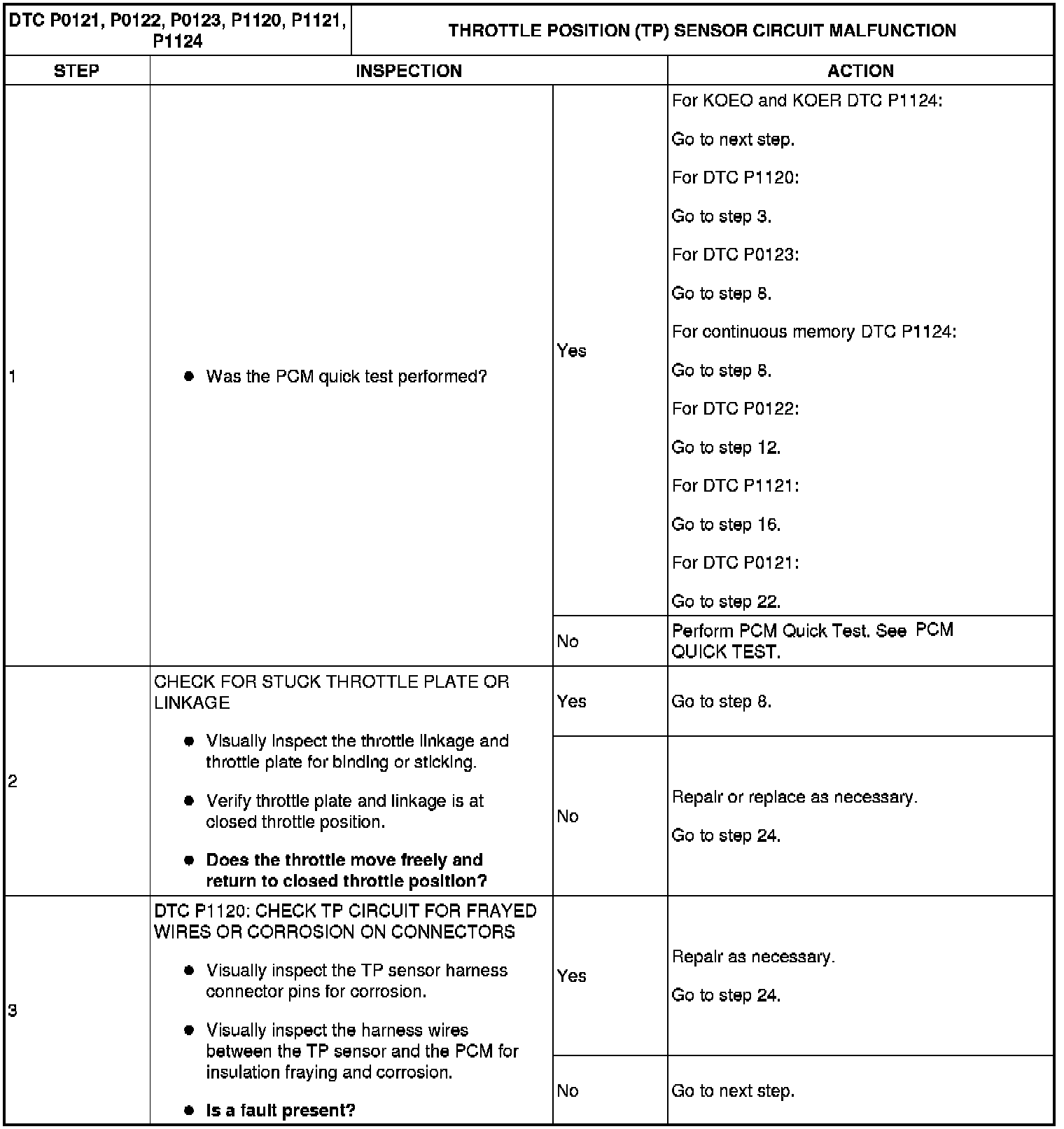 THROTTLE POSITION (TP) SENSOR CIRCUIT MALFUNCTIONDetection Condition/Possible Cause (Part 1):