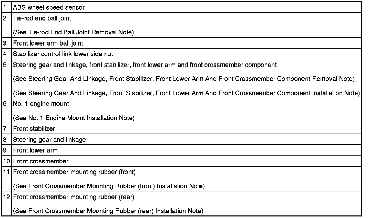 Steering Gear And Linkage, Front Stabilizer, Front Lower Arm And Front Crossmember Component Removal Note