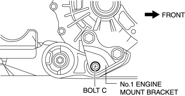 3. Temporarily install the No.1 engine mount bracket bolt C in the figure.