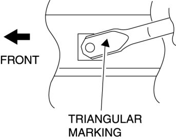 1. Install the cross bar so that the triangular marking is facing to the front of the vehicle.