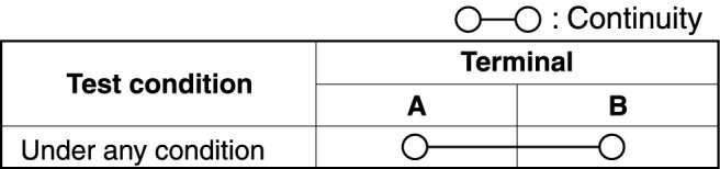 3. Verify that the continuity between terminals A and B is as indicated in the table.