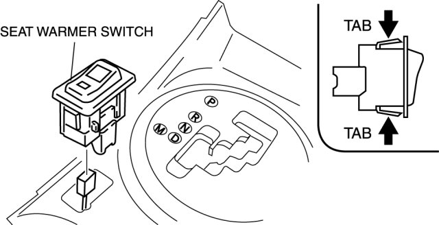 1. Squeeze the tabs of seat warmer switch and pull it outward to remove it.