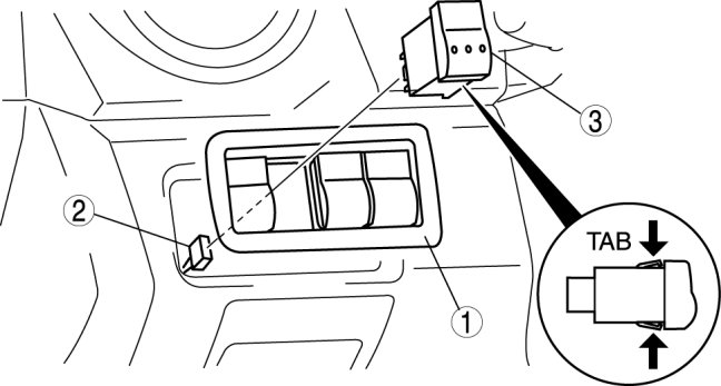1. Access the switch bezel component from behind of the dashboard, and squeeze the tabs of the switch bezel component.