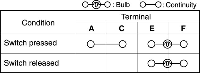 If not as indicated in the table, replace the TCS OFF switch.