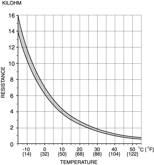 - If the resistance is not as shown in the graph, replace the ambient temperature sensor.