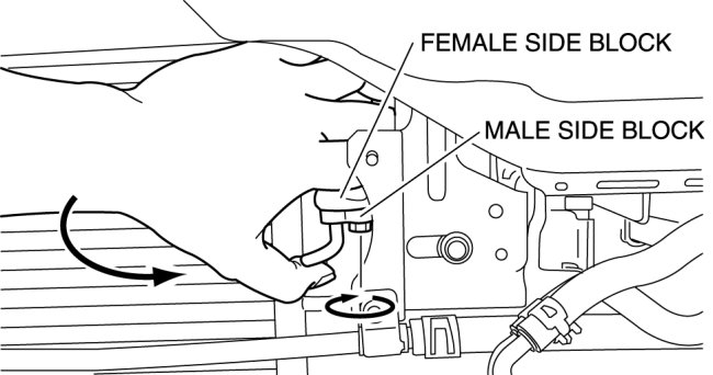 1. Disconnect the block joint type pipes by grasping female side of the block with hand and holding firmly, then tighten the connection bolt.