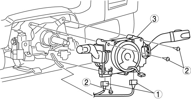 - If the negative battery cable or the steering angle sensor connector is disconnected, the stored initial position of the steering angle sensor will be cleared and the DSC will not operate properly, making the vehicle unsafe to drive. Perform the steering angle sensor initialization procedure after connecting the negative battery cable.