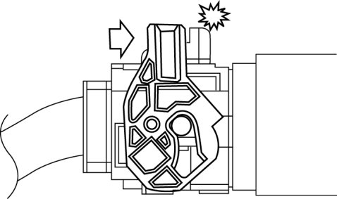 1. Verify that the PCM connector lever is tilted towards the wiring harness side as shown in the figure.