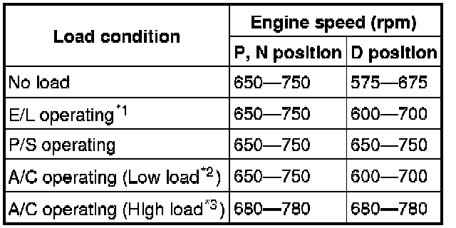 - Excludes temporary idle speed drop just after the loads are turned on.