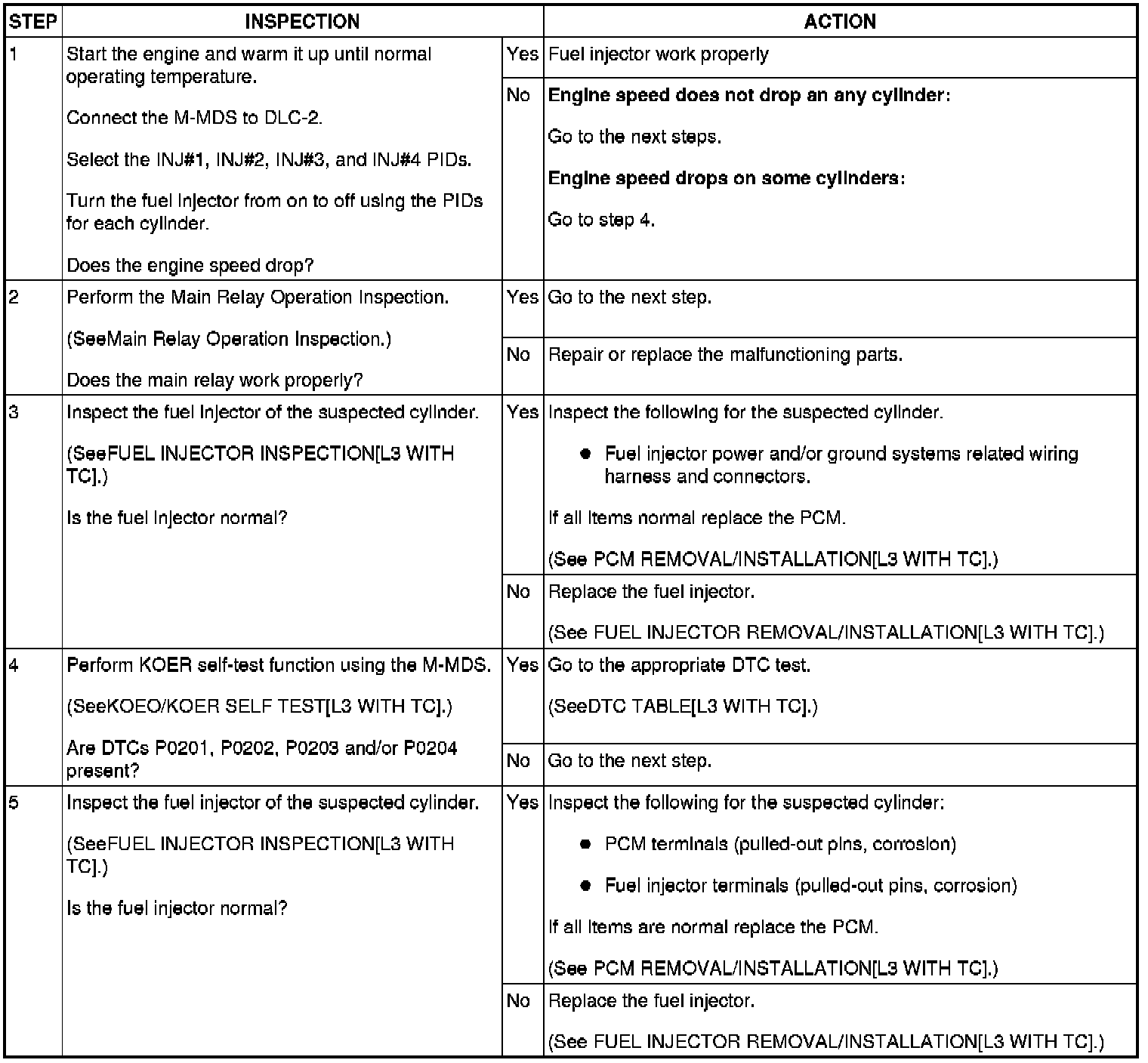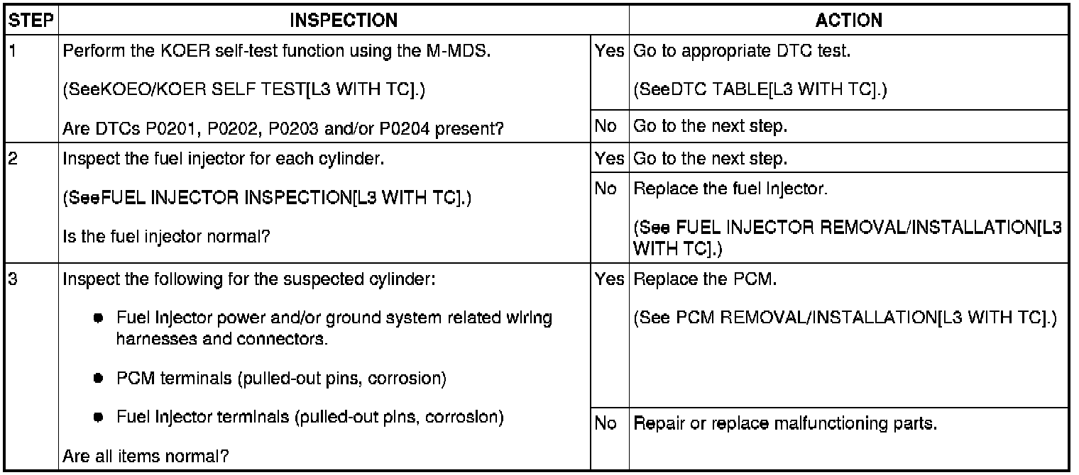 - This inspection has to be performed after the Fuel Injector Operation Inspection.