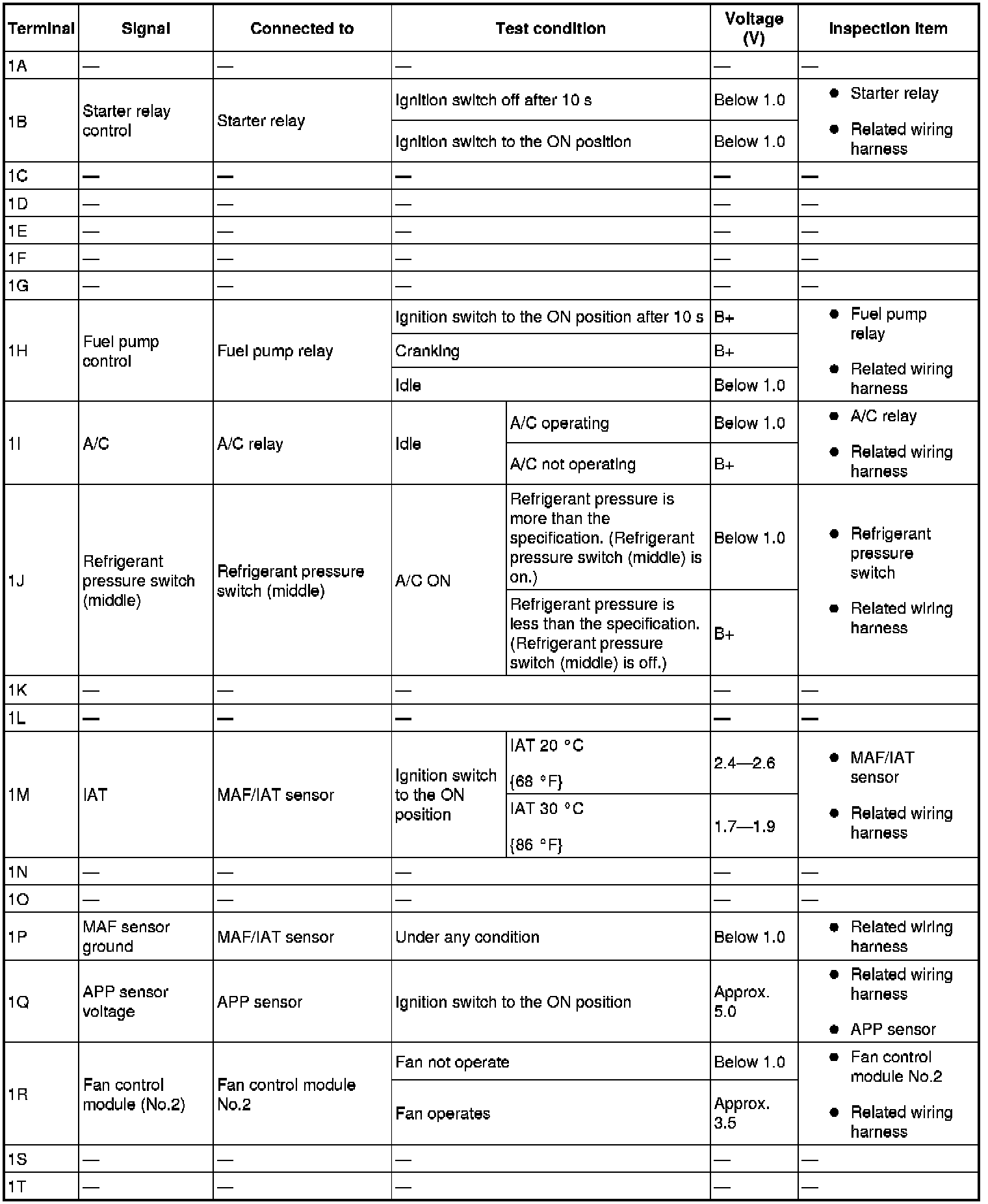 - The PCM terminal voltage can vary with the conditions when measuring and changes due to aged deterioration on the vehicle, causing false diagnosis. Therefore determine comprehensively where the malfunction occurs among the input systems, output systems, and the PCM.