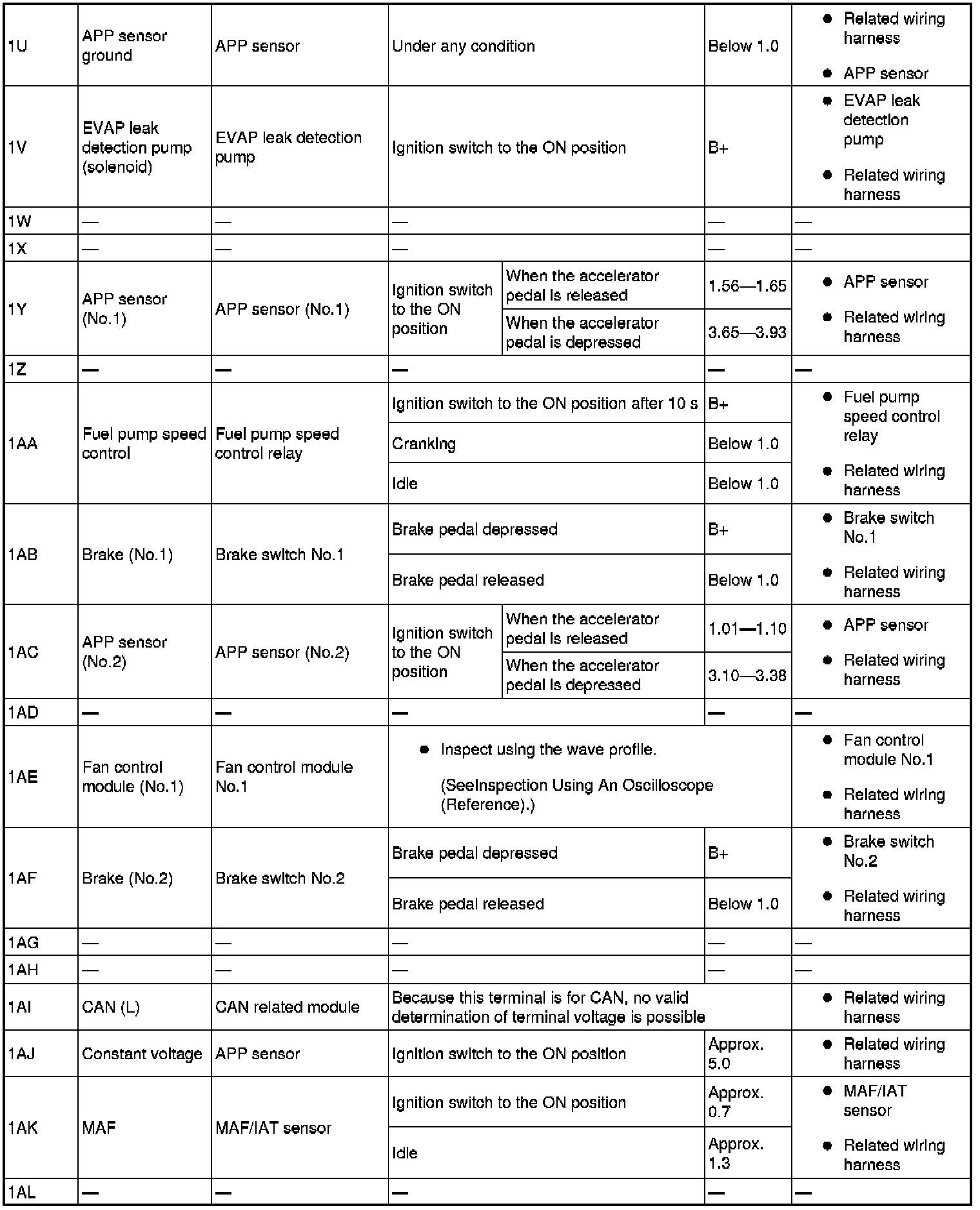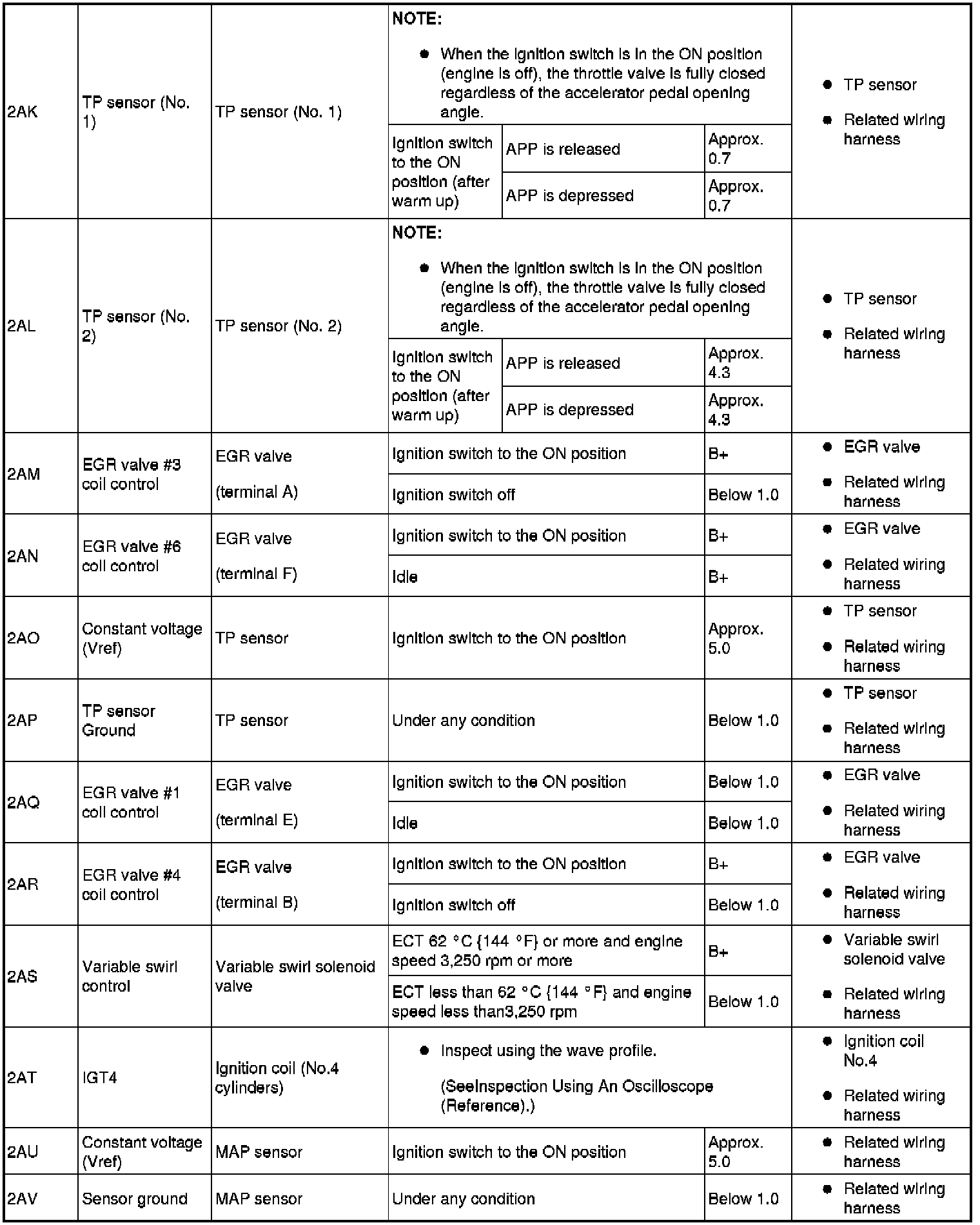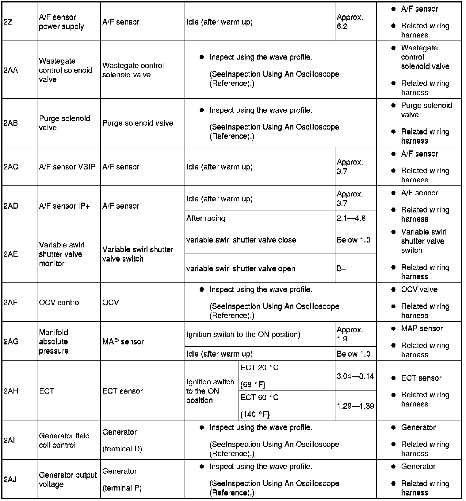 - PIDs for the following parts are not available on this model. Perform the specific inspections for the following parts: