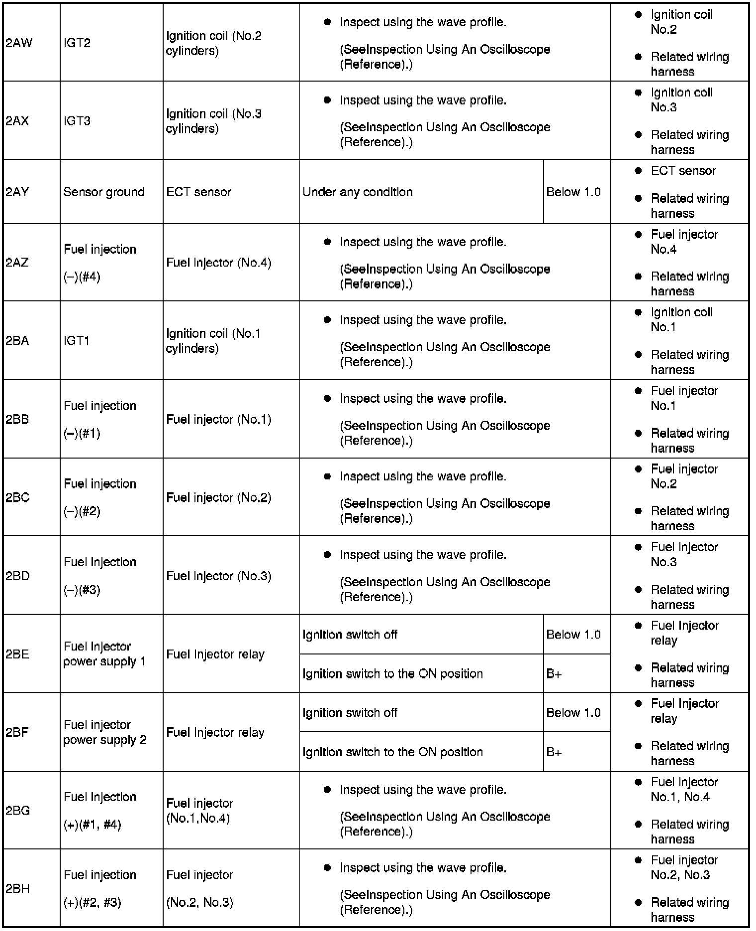 - Fuel injection No.1, No.4: 2BG (+)-body ground (-)