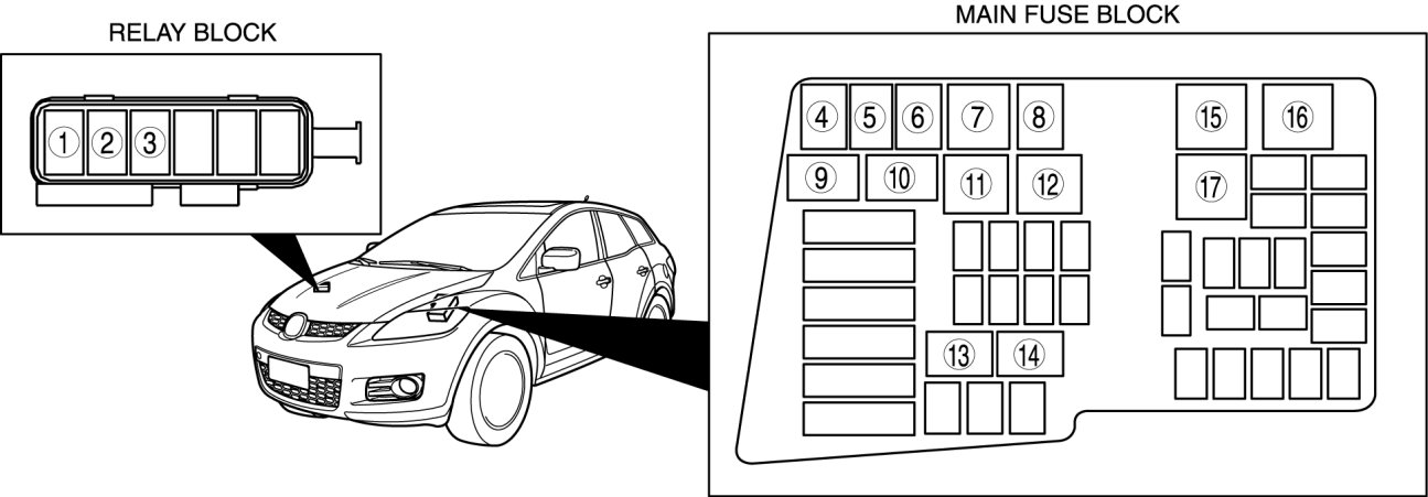 Main Relay (Computer/Fuel System): Locations