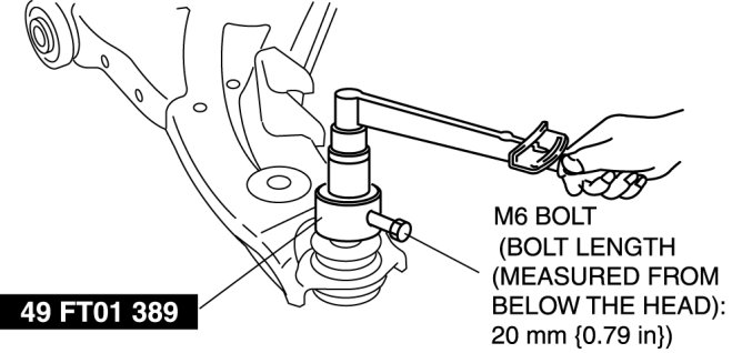 FRONT LOWER ARM INSPECTIONRotate the ball joint stud 5 times. Install the SST and M6 bolt (bolt length (measured from below the head): 20 mm {0.79 in}) to the ball joint stud, measure the rotational torque using a torque wrench.