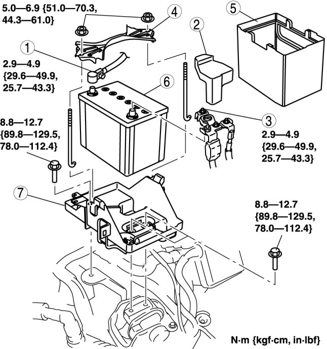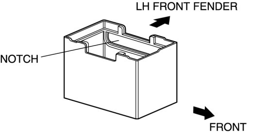 1. Install the battery box so that the side with the notch points toward the front fender (LH).