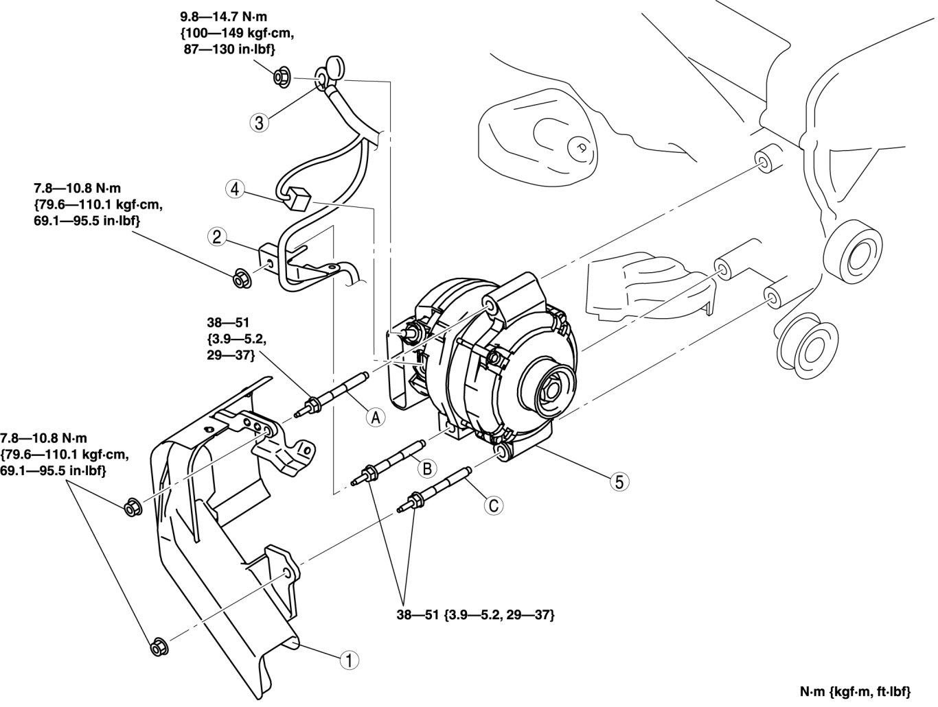 2. Tighten bolt B, C to the specified tightening torque.
