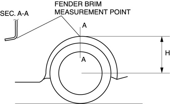 7. Measure height H from the center of the wheel to the fender brim.