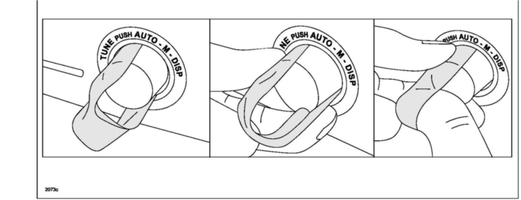 Mazda3 Audio Unit Software Programming Tool Connection Procedure1. Remove the right and left knobs by pulling out using a firm grip, or by using tape as shown.