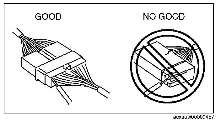 ^ Inspect the terminals of waterproof connectors from the connector side since they cannot be accessed from the wiring harness side.