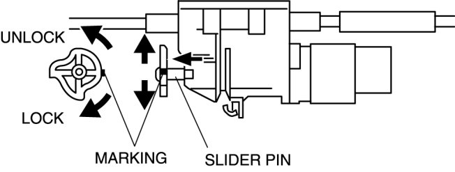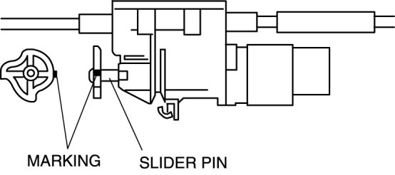 6. Verify that the marking on the slider pin is positioned as shown in the figure.