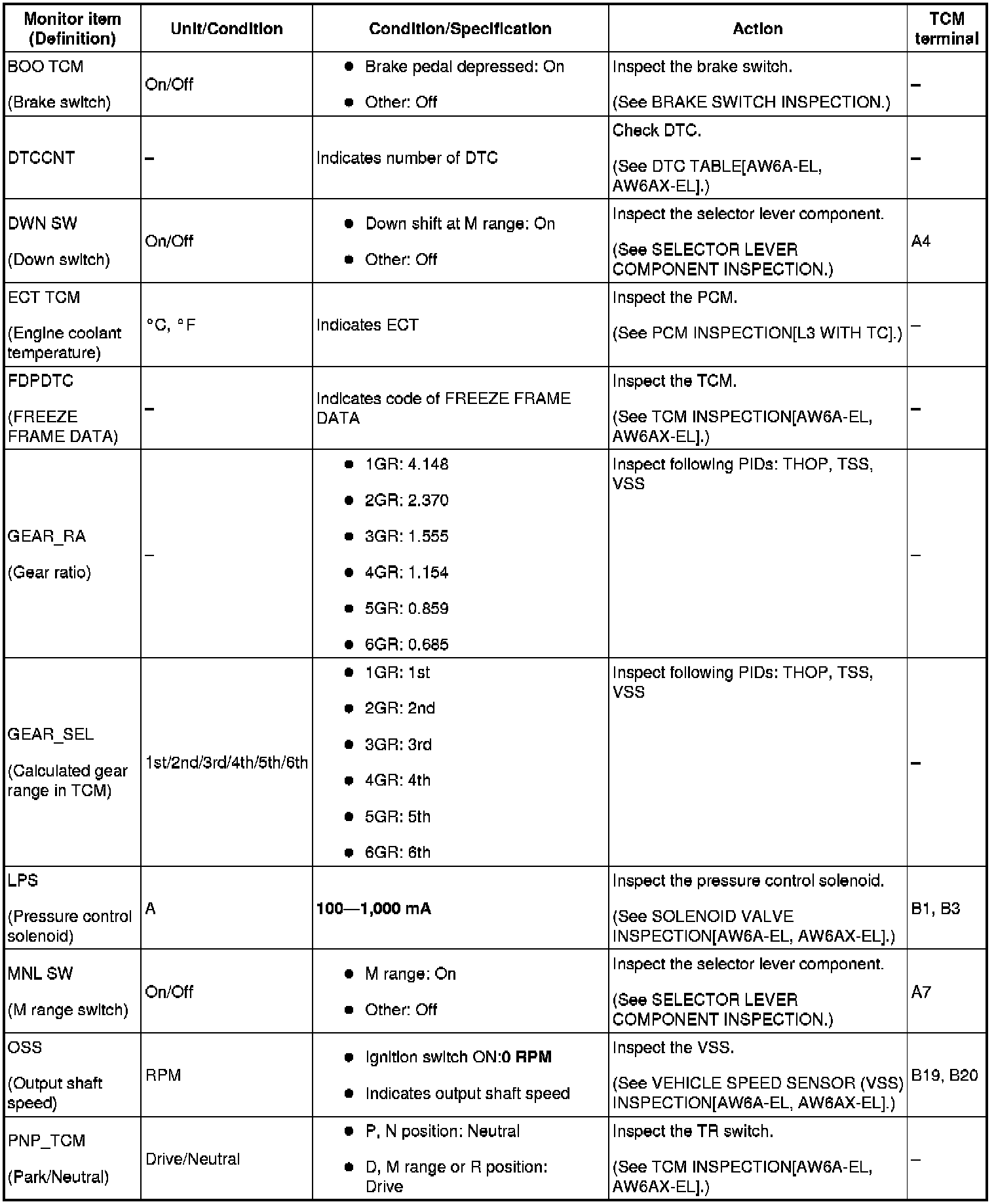 PID/DATA MONITOR INSPECTION [AW6A-EL, AW6AX-EL]