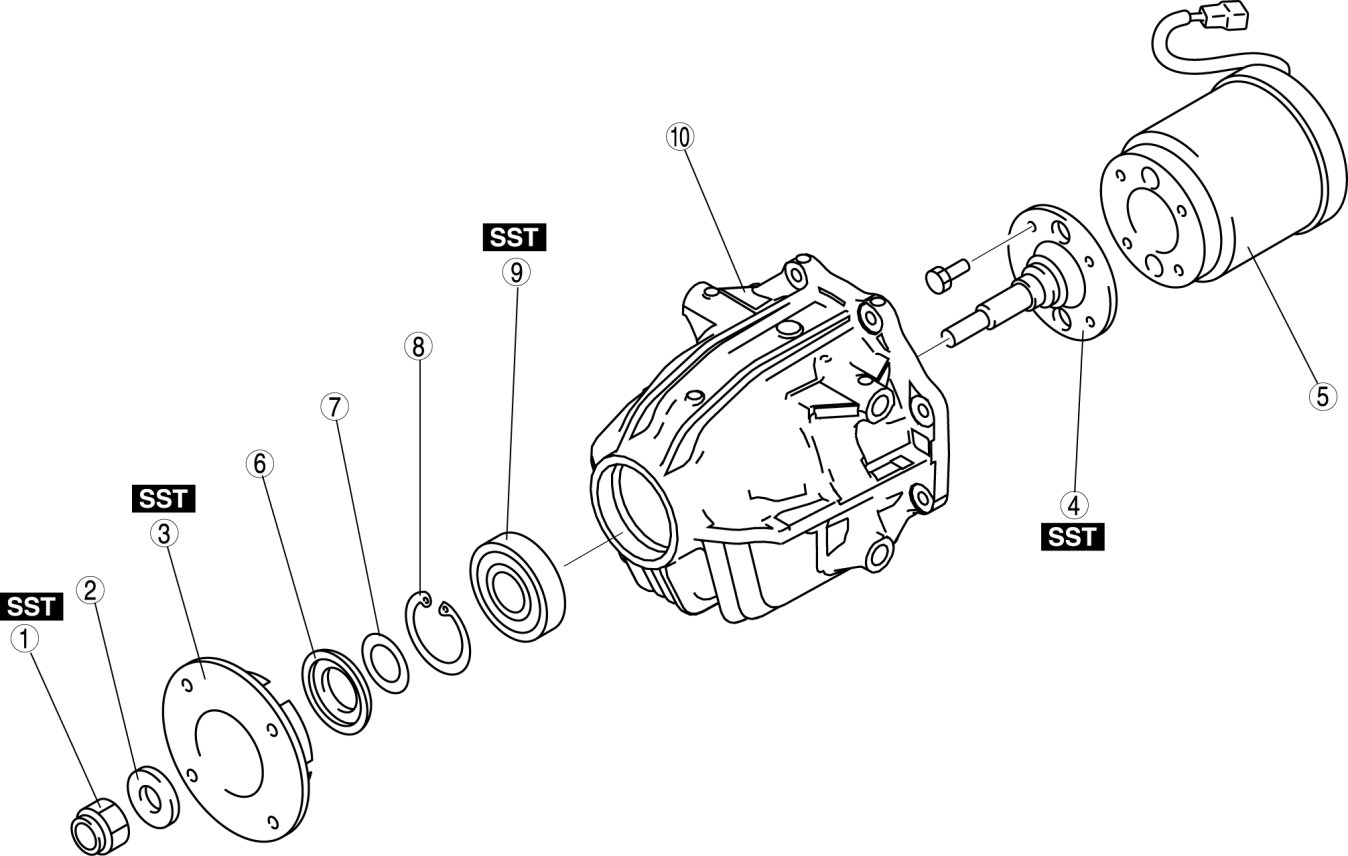 1. Remove the bearing using the SSTs and a press.