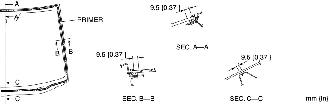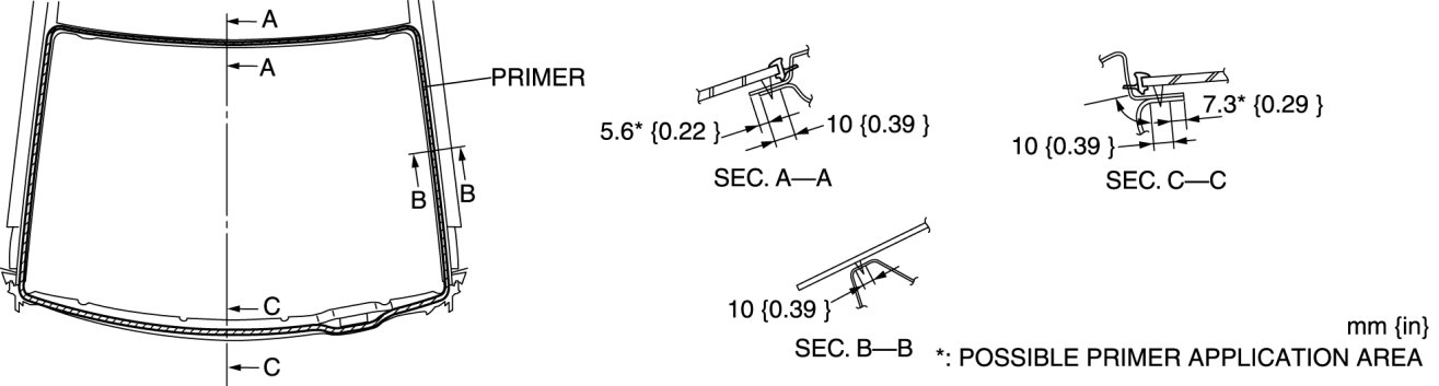 2. Clean and degrease an approx. 50 mm {1.97 in} wide strip along the perimeter of the windshield.