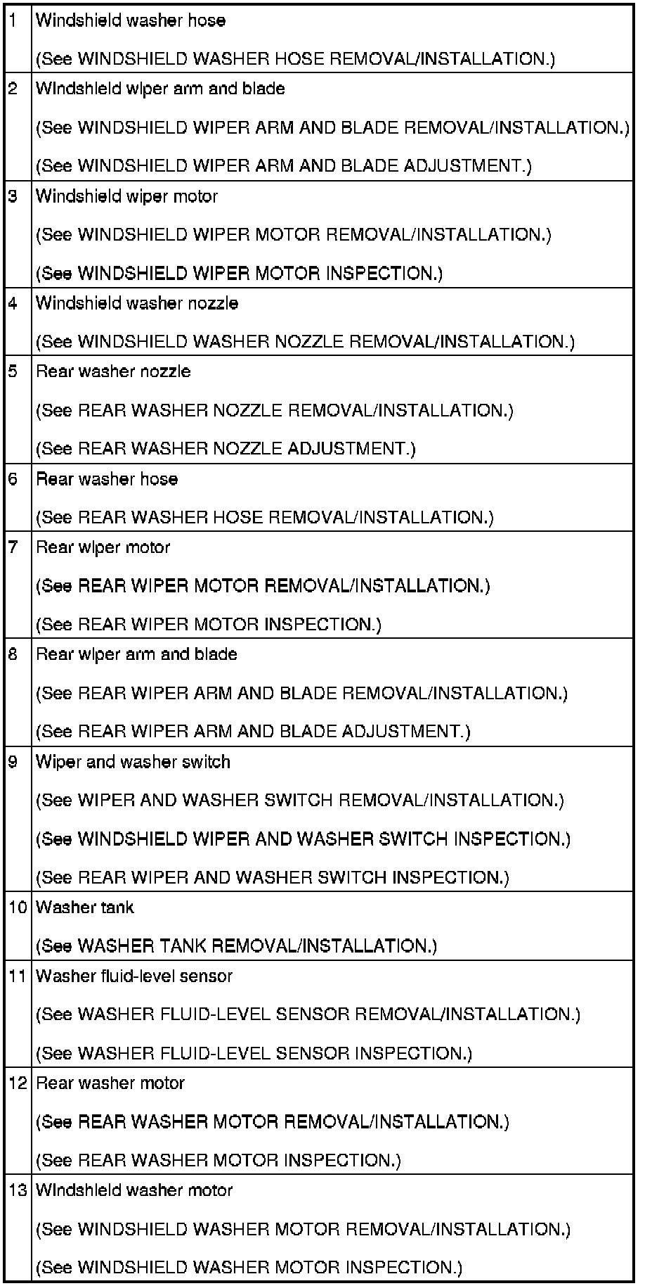 WIPER/WASHER SYSTEM LOCATION INDEX