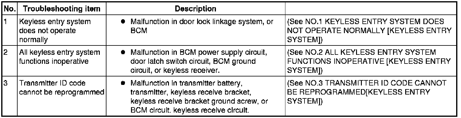 SYMPTOM TROUBLESHOOTING CHART [KEYLESS ENTRY SYSTEM]