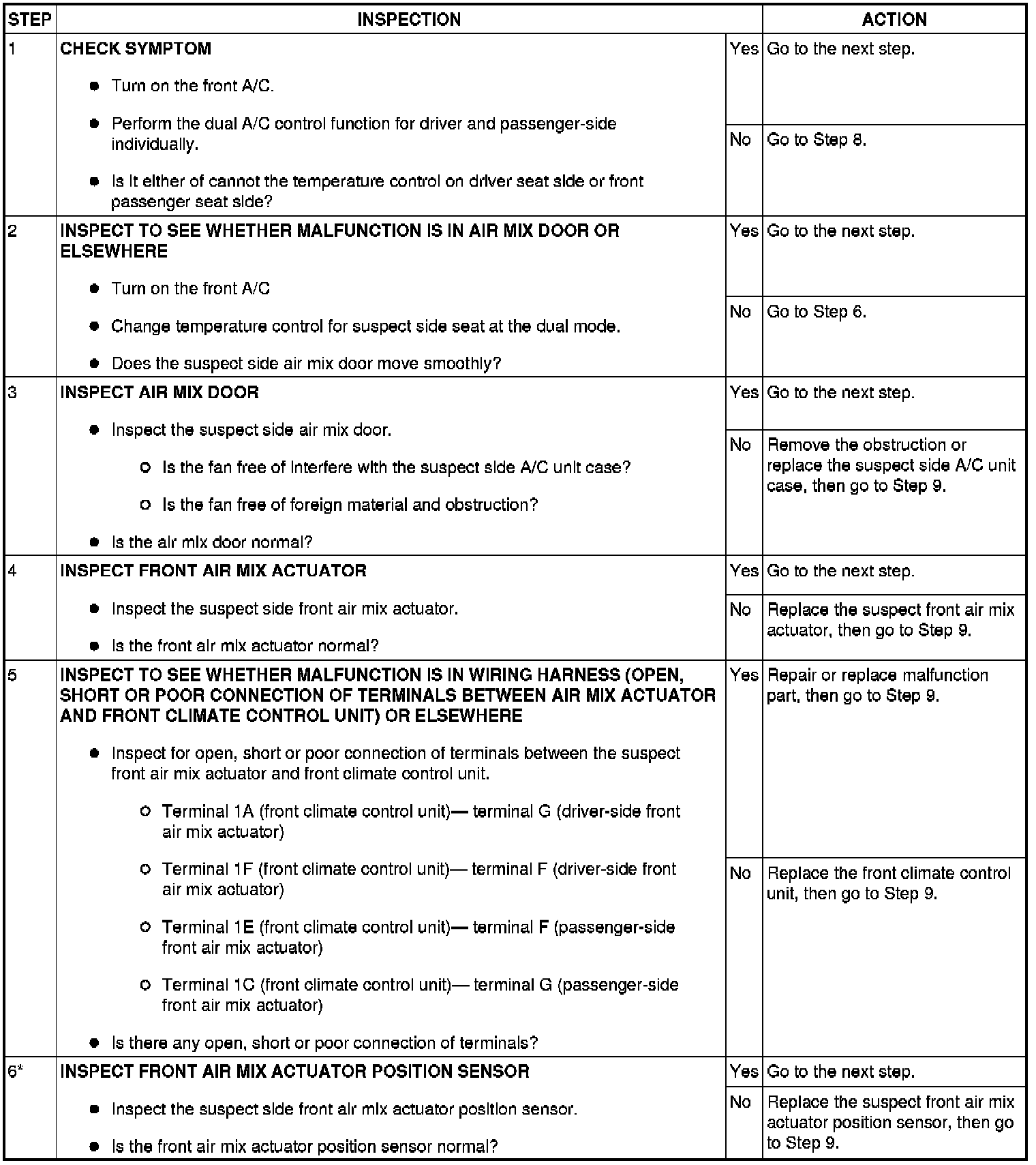 NO.11 DUAL A/C CONTROL DOES NOT OPERATE
