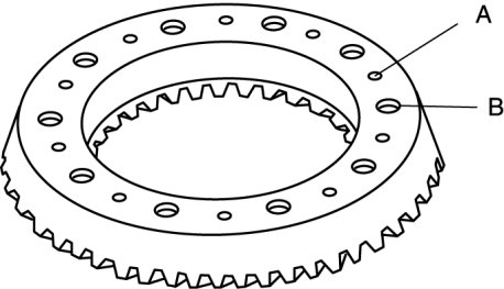 1. Apply a small amount of thread-locking compound to each of points A on the back of the ring gear, and bolt thread areas B (around the entire ring).