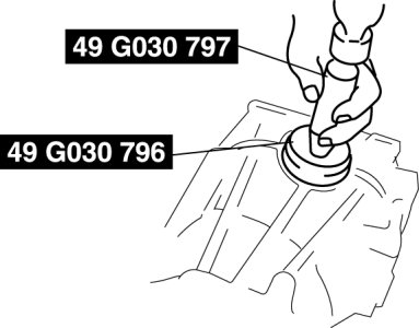 3. Assemble the bearing inner race (front bearing), SST(49 G027 005), companion flange, washer, and locknut from the front of the differential gear.