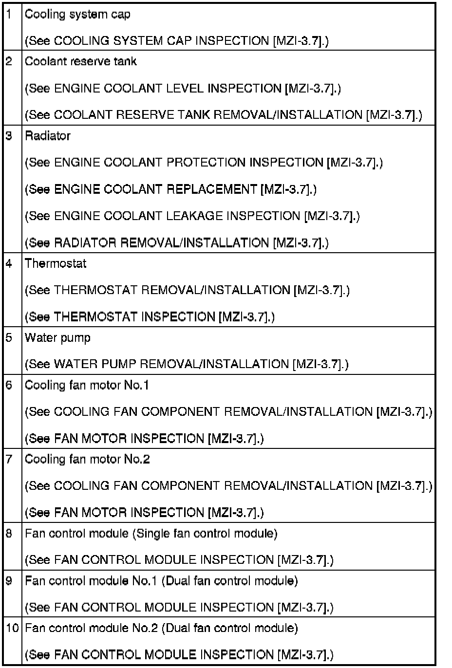 COOLING SYSTEM LOCATION INDEX [MZI-3.7]
