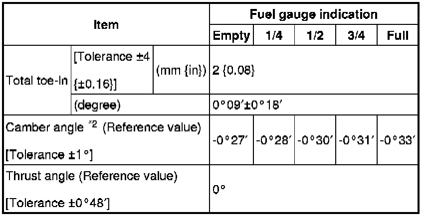 FRONT WHEEL ALIGNMENTFront wheel alignment [2WD] (Unloaded)*1
