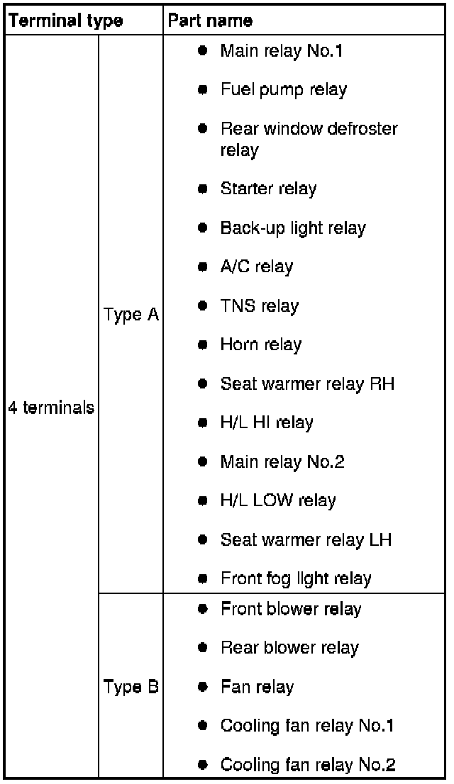 - If not as indicated in the table, replace the relay.