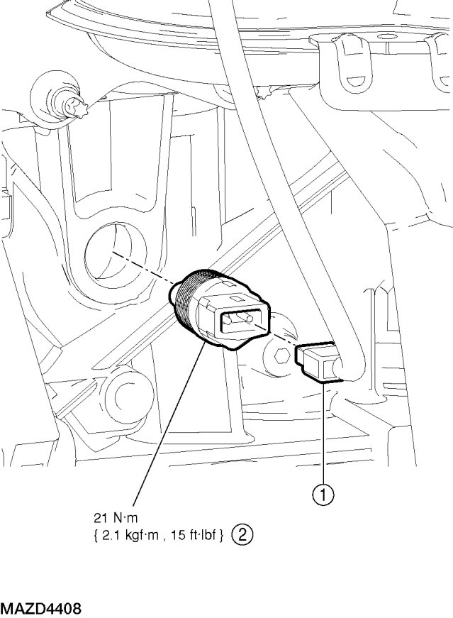 - To install, tighten to 21 Nm {2.1 kgf-m, 15 ft-lbf}.